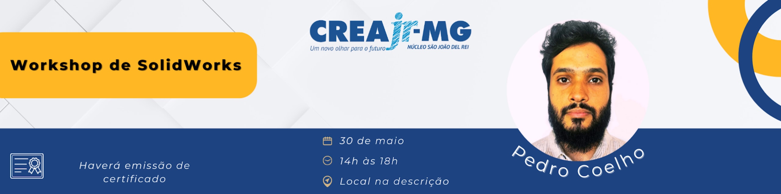 On May 30th, from 2 PM to 6 PM, we will host an exclusive workshop with Pedro Coelho, a mechanical engineer graduated from UFSJ and a specialist in Project Management. With extensive experience in innovative projects such as Paramec-UFSJ and LAPIP-UFSJ, Pedro works in the fields of Mechanical Engineering, Information Science, and Industrial Design, focusing on additive manufacturing and digital twins.